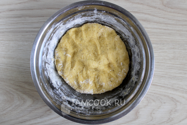 Смажьте руки растительным маслом и замесите эластичное тесто. Оставьте его на 15-20 минут, пока будете заниматься начинкой.