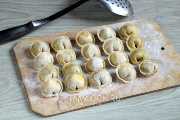 Или сделайте привычные пельмени, но количество начинки в них может быть немного поменьше, т.е. зависит от размеров круглых заготовок их теста.
