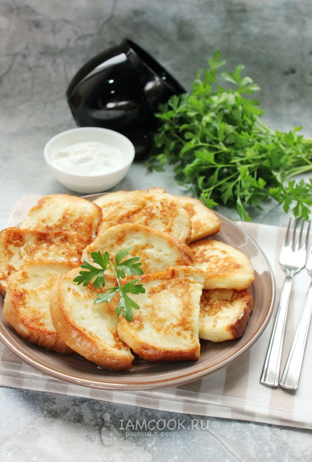 Гренки со сметаной готовы.