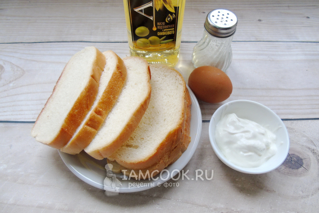 Соберите ингредиенты для приготовления гренок со сметаной.