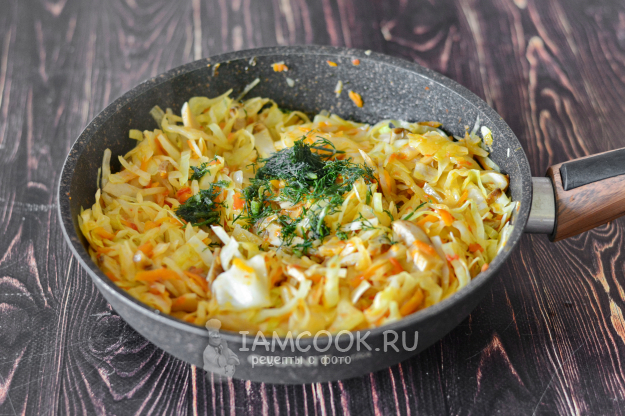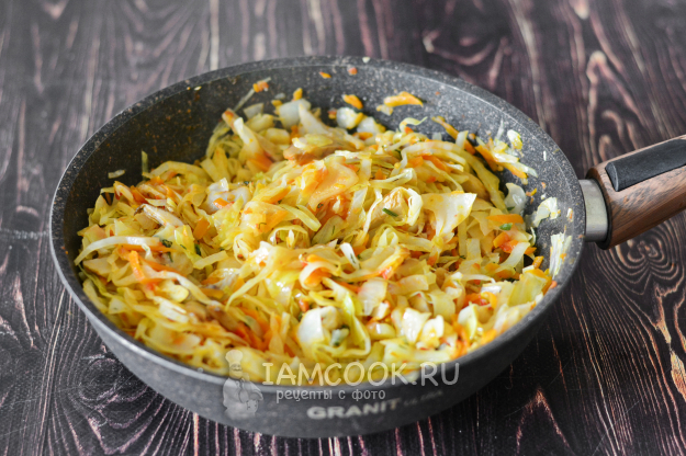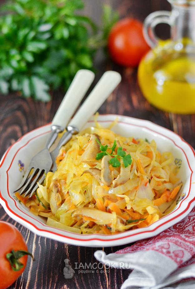 Сначала на сильном огне слегка обжарьте всё вместе. А как только капуста начнёт оседать, накройте сковороду крышкой и тушите солянку около 30 минут. В процессе готовки добавьте по вкусу соль. Если грузди солёные, то с солью будьте осторожны. Если грузди свежие или замороженные, то посолите блюдо по вкусу.
