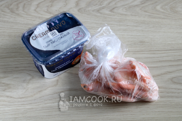 Для паштета из креветок подготовьте ингредиенты по списку к рецепту. Масса креветок указана замороженных, купила на развес, они среднего размера, без излишков ледяной глазури. Творожный сыр можете заменить рикоттой.