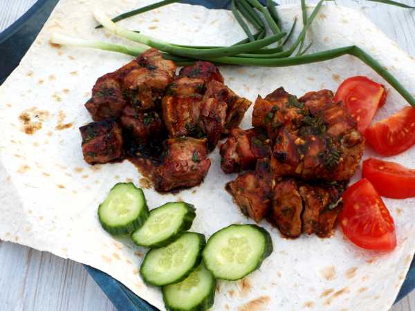 Чтобы пожарить такое мясо на шампурах, надо "надеть" его на два шампура, чтобы куски при переворачивании не прокручивались.