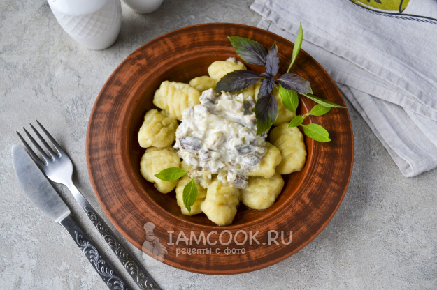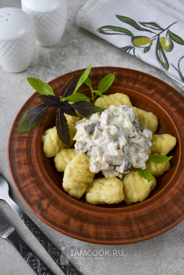 Подавайте картофельные ньокки с грибами в сливочном соусе горячими.