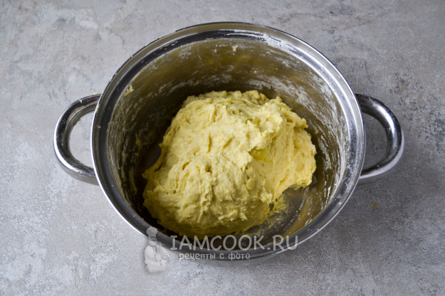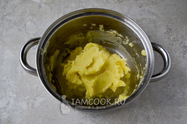В немного остывшее пюре разбейте яйцо и всыпьте муку.