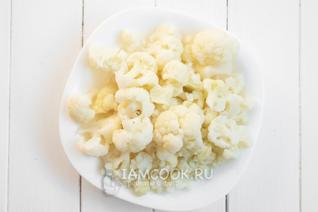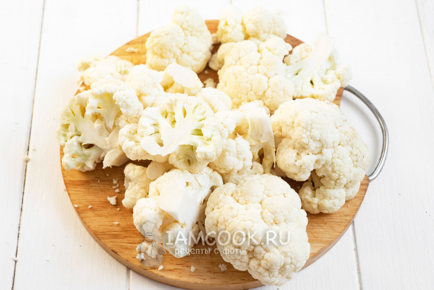 Цветную капусту поделим на соцветия - крупные нарежем на более мелкие.
