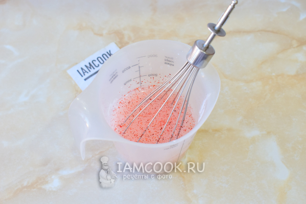 В стакане размешайте муку с водой. Добавьте немного соли, специи.