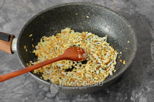 Фишка этого кетчупа - в добавлении жареного лука. Его аромат делает кетчуп просто сумасшедшим! Поэтому мелко нарежьте лук и поджарьте на масле до очень хорошего золотистого цвета.