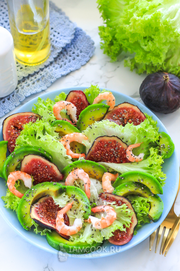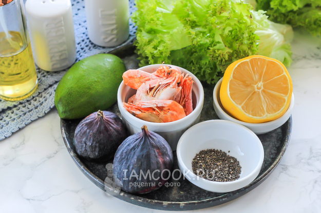 Продукты для приготовления салата с инжиром и креветками (и авокадо) - перед вами!