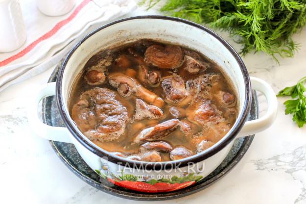 Маслята тщательно промойте в воде и выложите в кастрюлю, казан. Залейте горячей водой и отварите 5 минут.