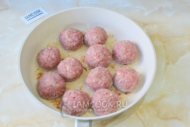 На сковороду налейте растительное масло. Руками слепите шарики и выложите в сковороду.
