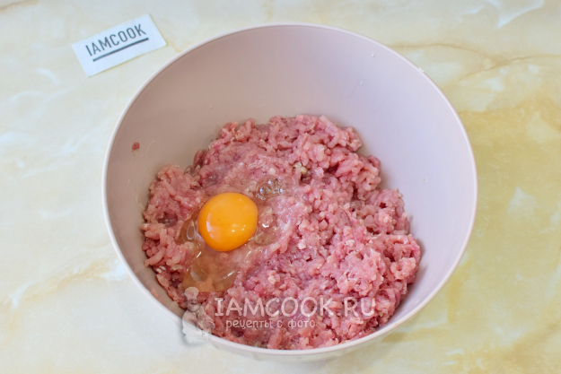 Мясо индейки прокрутите в мясорубке. Добавьте к фаршу яйцо.