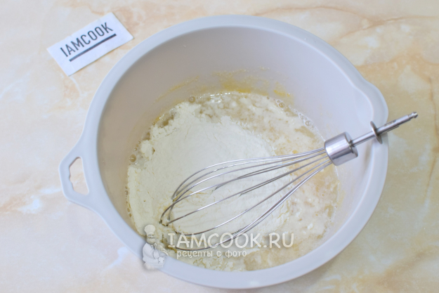 Сыворотку нагрейте до комнатной температуры, примерно 27-28 градусов. Теплая сыворотка делает тесто нужной структуры. Если сыворотка будет горячей, то тесто начнет завариваться, а нам это не надо.