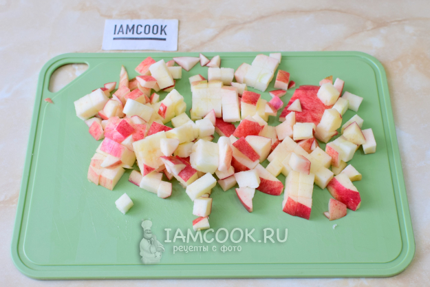 Яблоки нарежьте небольшими кубиками, вырезая из них сердцевину.