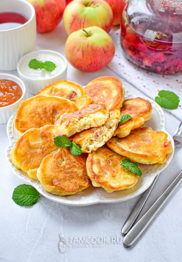 Дополните оладьи сметаной или джемом и подавайте к столу.