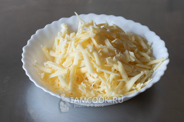 Пока жарится лук и варится картошка, трём сыр на крупной тёрке.