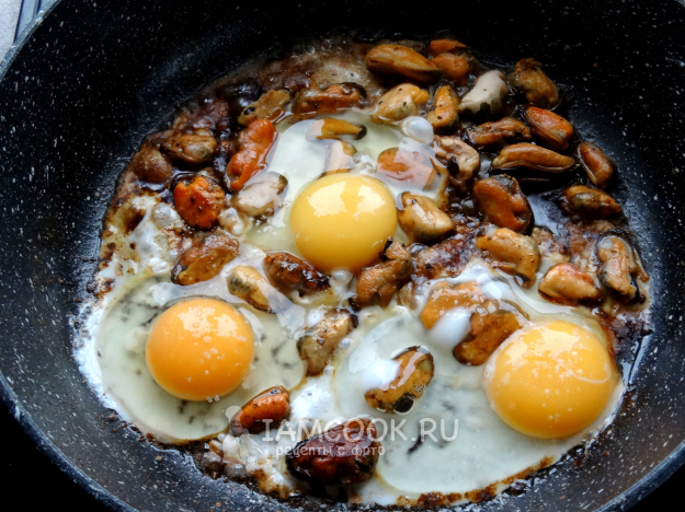 После приготовления омлета с мидиями остались приятные вкусовые впечатления. Решила приготовить ещё и яичницу.