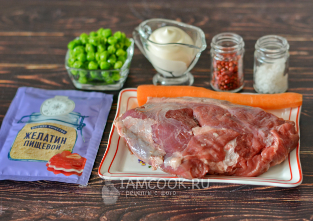 Продукты для приготовления заливного мяса «Провансаль» из говядины соберите по списку ингредиентов.