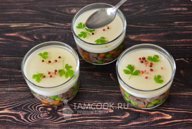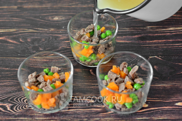Небольшое количество прозрачного бульона с желатином оставьте для декорирования верха.