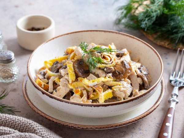 Добавьте в салатник мелко нарезанную свежую петрушку. Перемешайте. Затяните салатник пищевой пленкой и поставьте в холодильник на пару часов. За это время салат настоится. Чем дольше корейский салат с грибами настаивается, тем ароматнее, острее и пикантнее будет.