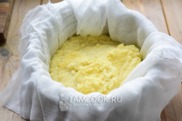 Картофельную массу переложим на марлю, сложенную в 4 слоя.