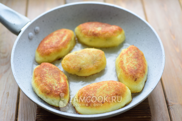 В сковороде разогреем растительное масло, обжарим в нем все заготовки колдунов с двух сторон до золотистой корочки на среднем огне.