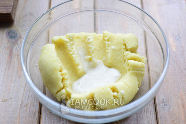Затем отжатую картофельную массу переложим в миску, добавим крахмал и 1 ч.л. соли. Перемешаем.