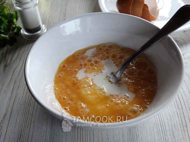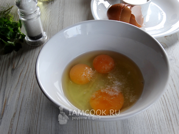 Яйца разбить в миску, подсолить.