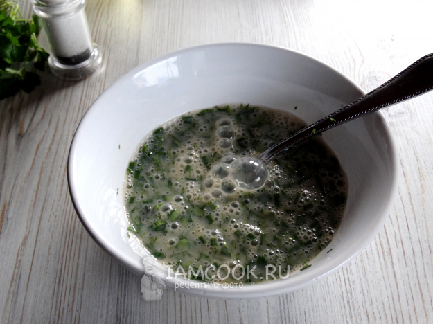 Добавить в яйца зелень, перемешать.