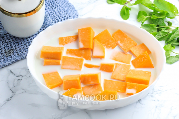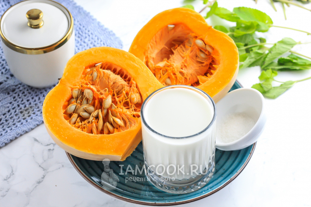 Продукты для приготовления тыквы с молоком в духовке - перед вами!