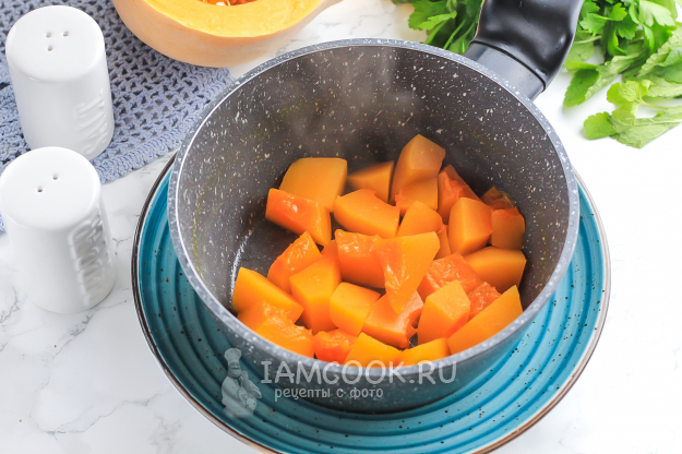 После чего воду слейте, оставляя лишь отваренную тыкву.