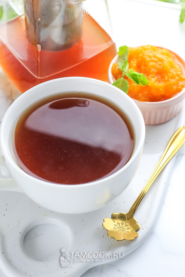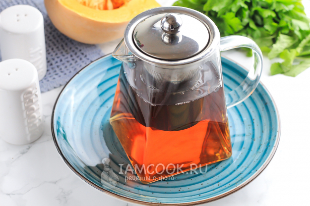 Разлейте тыквенный чай в чашки или стаканы и подайте к столу теплым. Можно дополнить напиток сладкой выпечкой, тостами, блинами и т.д.