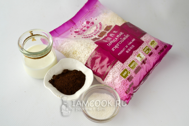 Соберите продукты для приготовления кофе с шариками тапиоки. Кофе можно сварить или использовать быстрорастворимый - как вам удобнее. Добавьте в кофе сахар по вкусу.