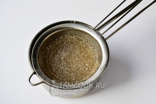 Перелейте шарики в ситечко и промойте под струей холодной воды. Если ваш кофе еще не готов, переложите шарики в посуду и залейте холодной водой или каким-нибудь сиропом, чтобы шарики не слиплись.