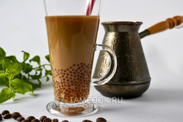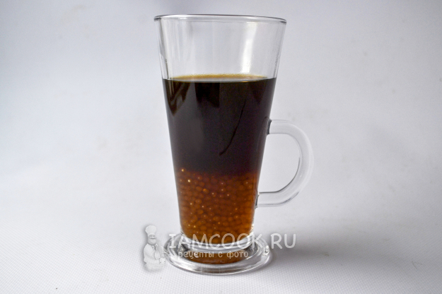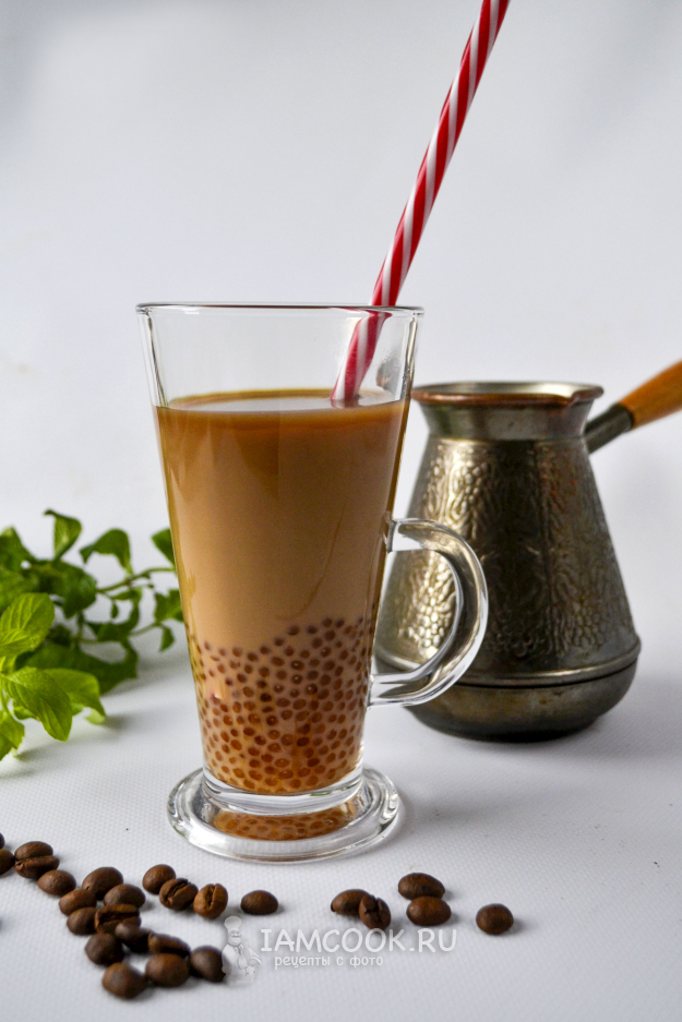 Подается кофе с широкой соломинкой, через которую проходят шарики. Пьем и наслаждаемся напитком!