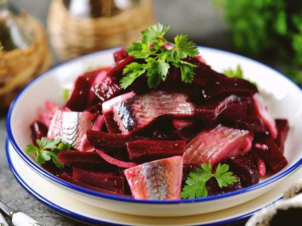 Выложить свёклу на тарелку, сверху разложить сыр.