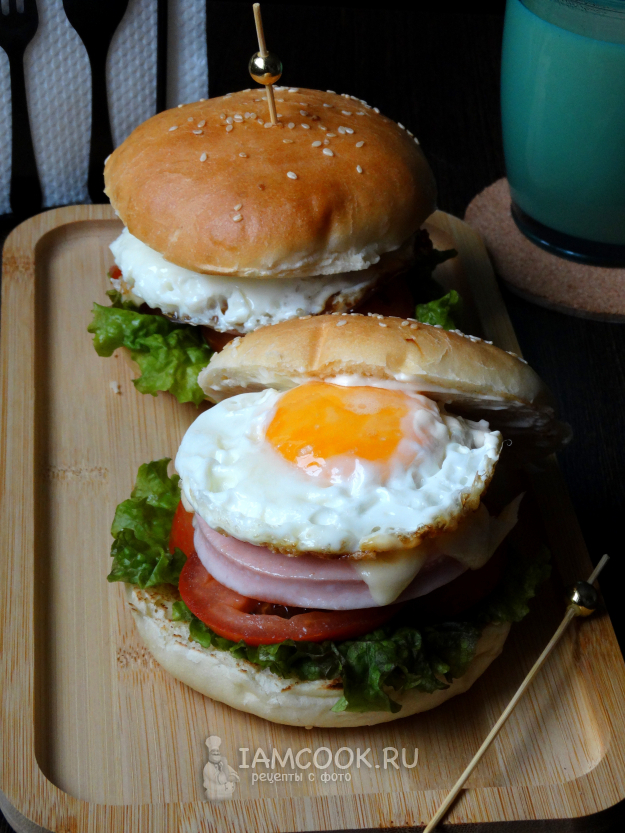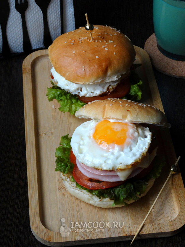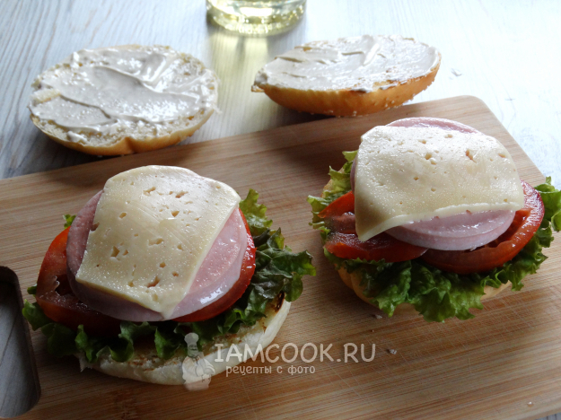 Булочку разрезать пополам, подогреть срезом вниз на сухой сковороде.