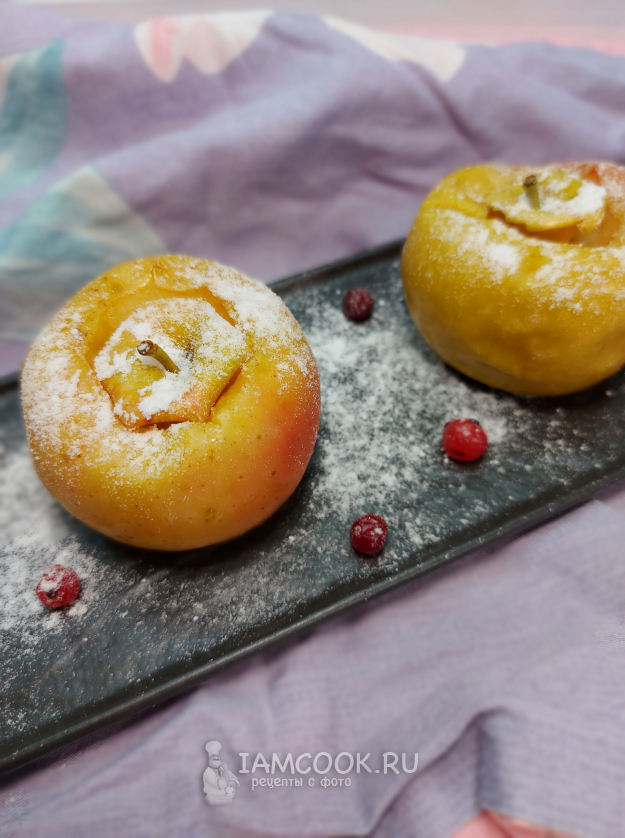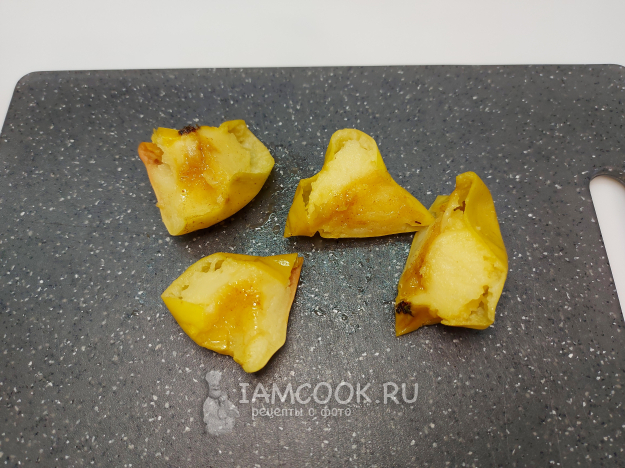 В разрезе можно увидеть нежную мякоть печеного яблока.