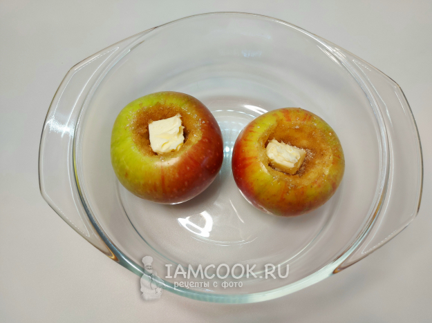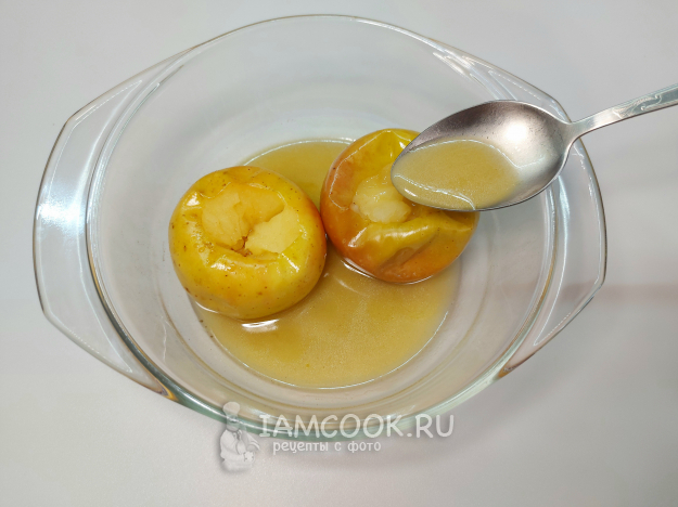 Выделившийся сок заливаю в середину яблока.