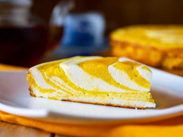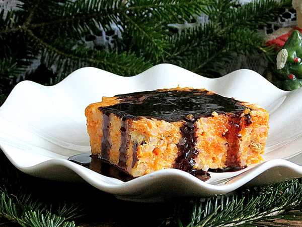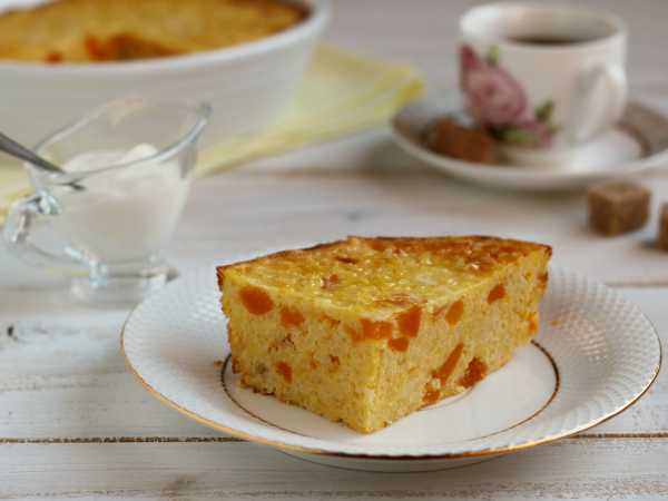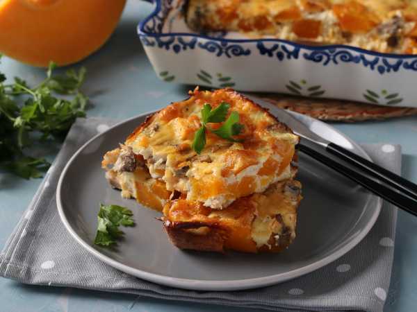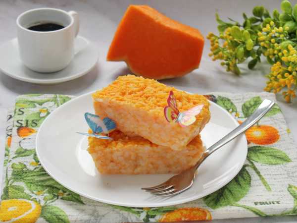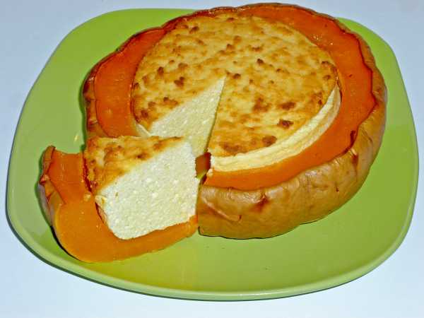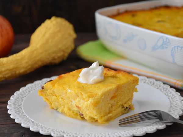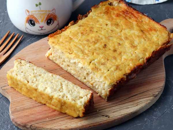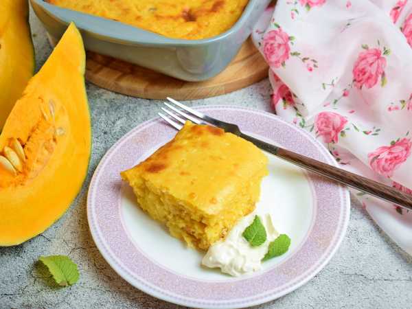 Когда творожно-тыквенная запеканка с крахмалом и изюмом полностью остынет, разрежьте ее на порции и подавайте к столу.