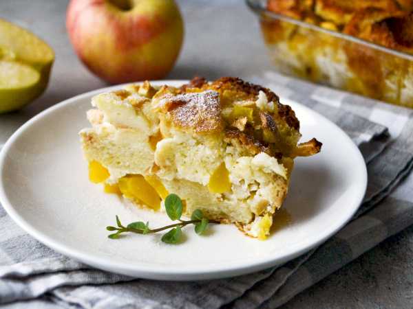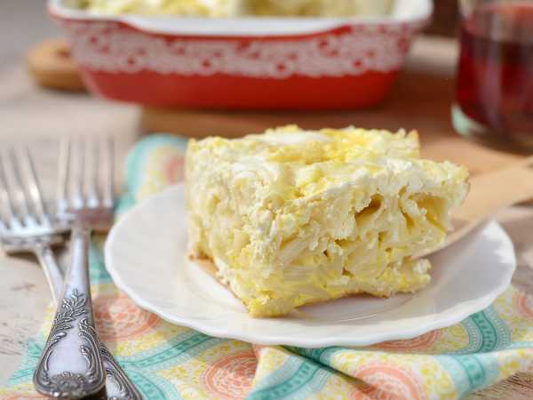 Поставьте форму в разогретую до 180°С духовку на 40-45 минут. Запекайте до румяной корочки. Готовую запеканку остудите в форме.