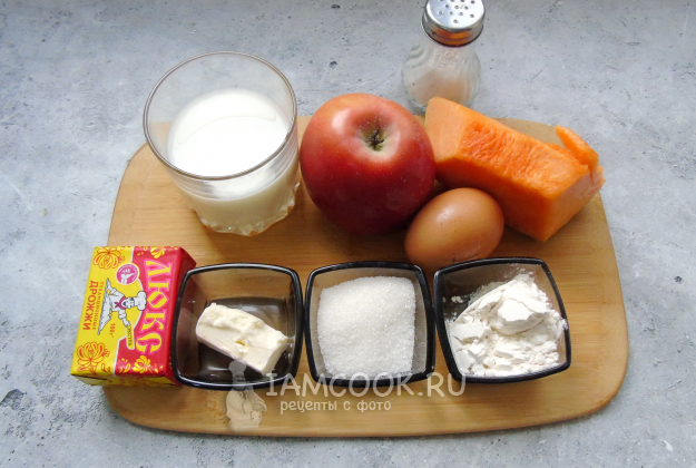 Соберите ингредиенты для приготовления пирожков с тыквой и яблоками в духовке.