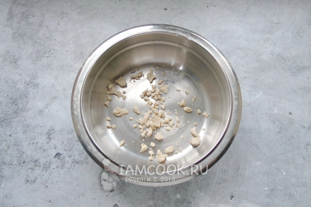 Замесите тесто. Свежие прессованные дрожжи накрошите в миску.