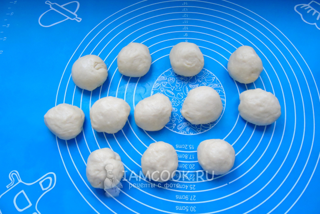 Тесто достаньте из миски и обомните. Разделите на шарики весом 50-60 граммов.