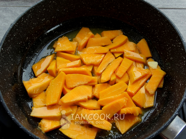 Когда тыква подрумянится и станет мягкой, можно убирать с огня.
