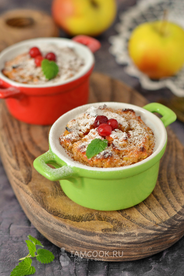 Запекайте десерт из яблок без теста в духовке при температуре 180°С около 20 минут, до румяного цвета.