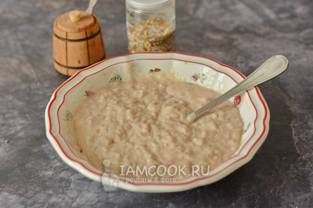 Размешайте хорошенько "куриное тесто" для маффинов и оставьте на 10-15 минут, чтобы семолина набухла.