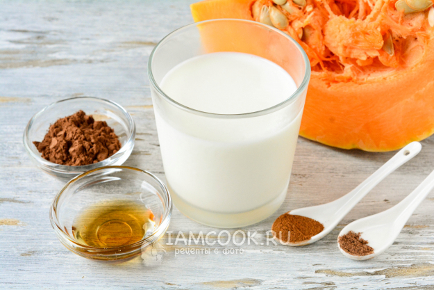 Соберите все ингредиенты для приготовления какао с тыквой.