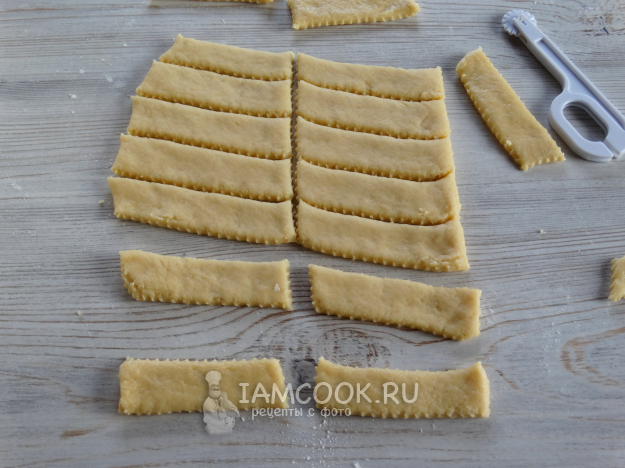 Дать тесту отдохнуть 10 минут, затем раскатать и нарезать на полоски (размер - как нравится).