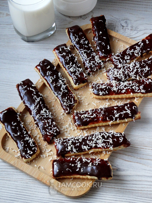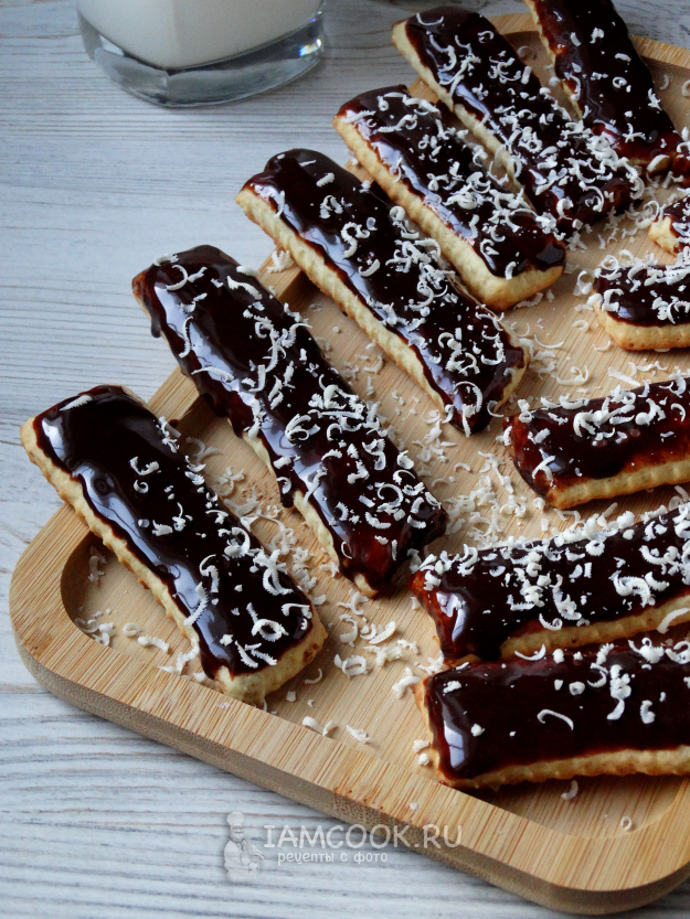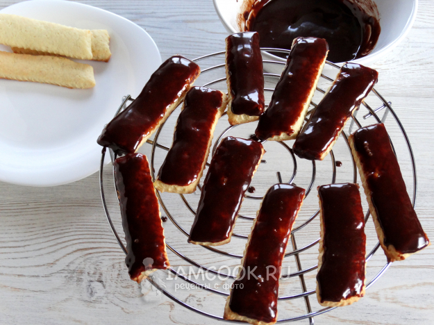 Обмакнуть печенье в глазурь, а затем убрать в холодильник. Глазурь немного подстынет и можно угощаться.